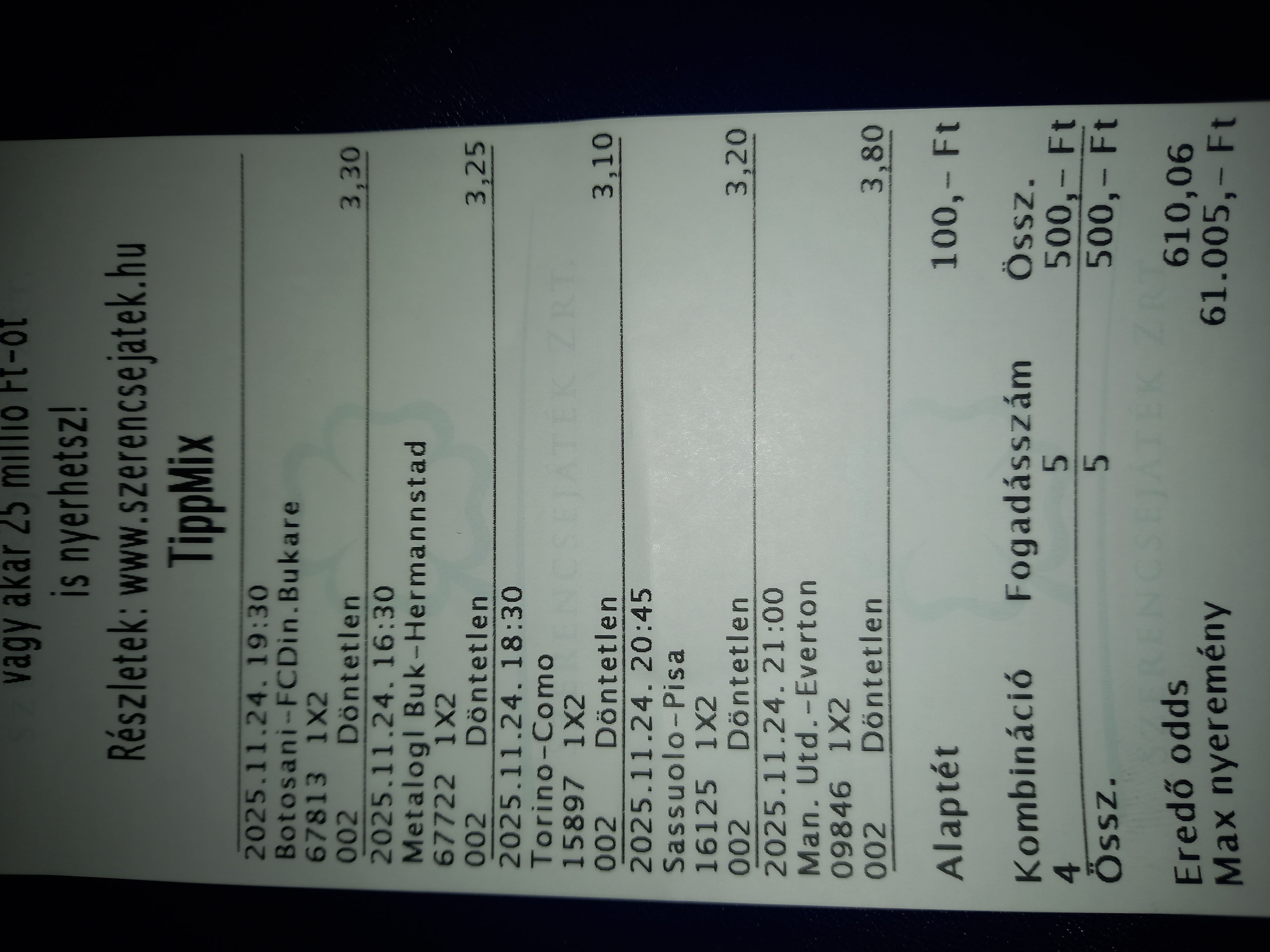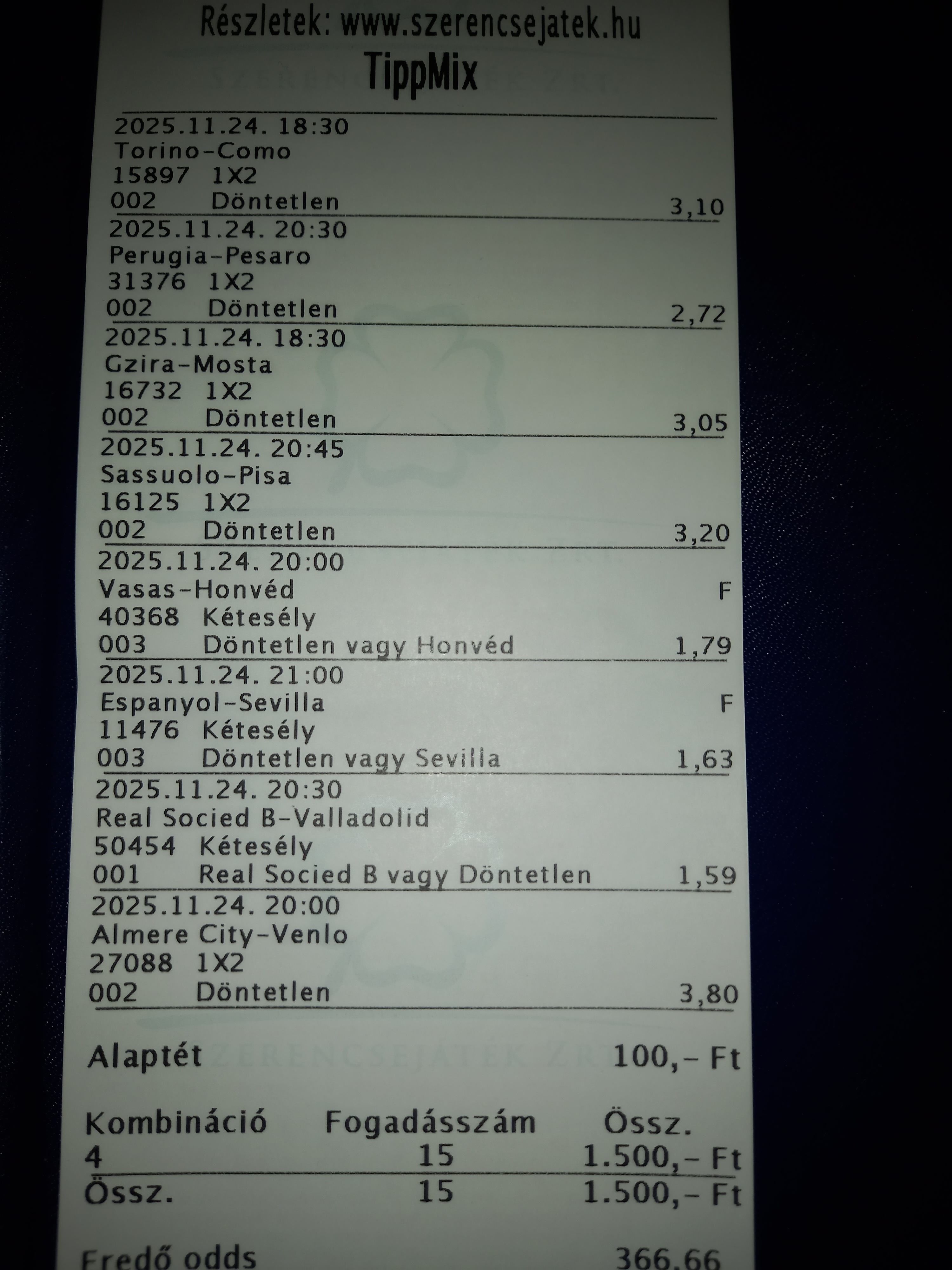Kezdetben ment ez a 3 FIX 5 döntetlen (itt általában 2 mindig jött a Fix mellé) Aztán változott a világ, vagy hazai, vagy vendég, és itt pont a várakozások ellentétje.