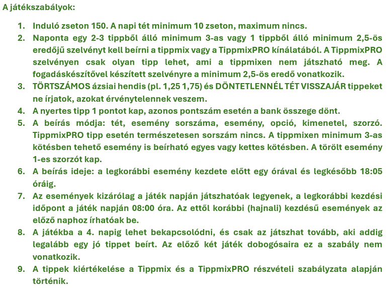 induló 265 tét 65 marad 200