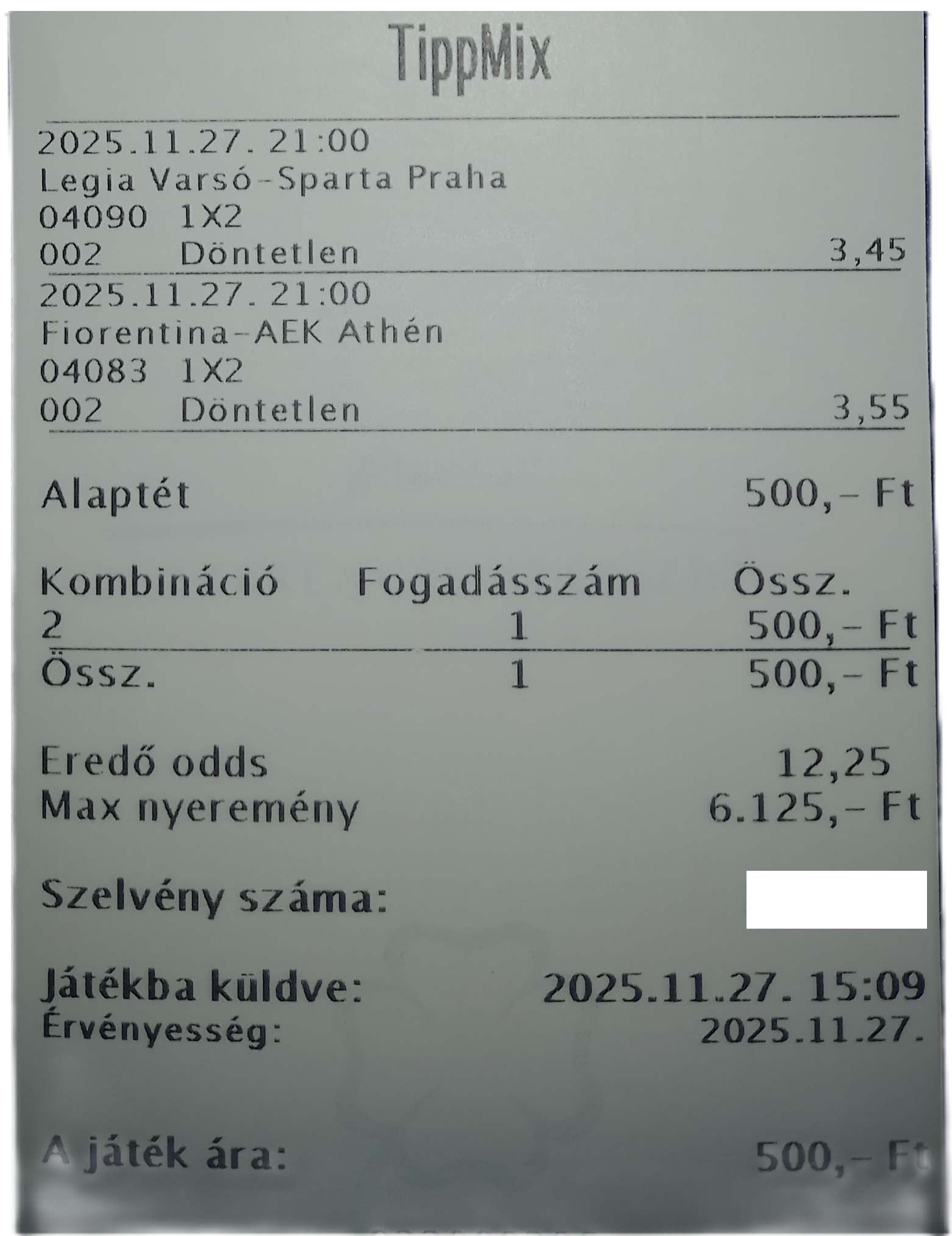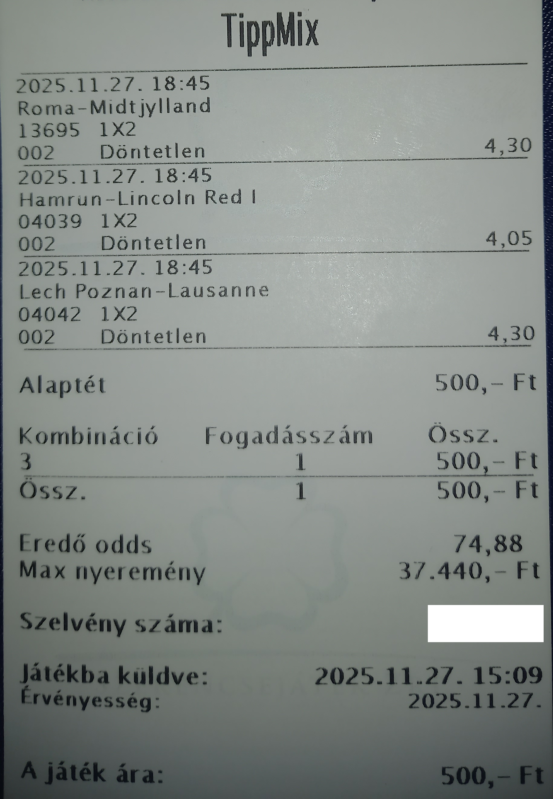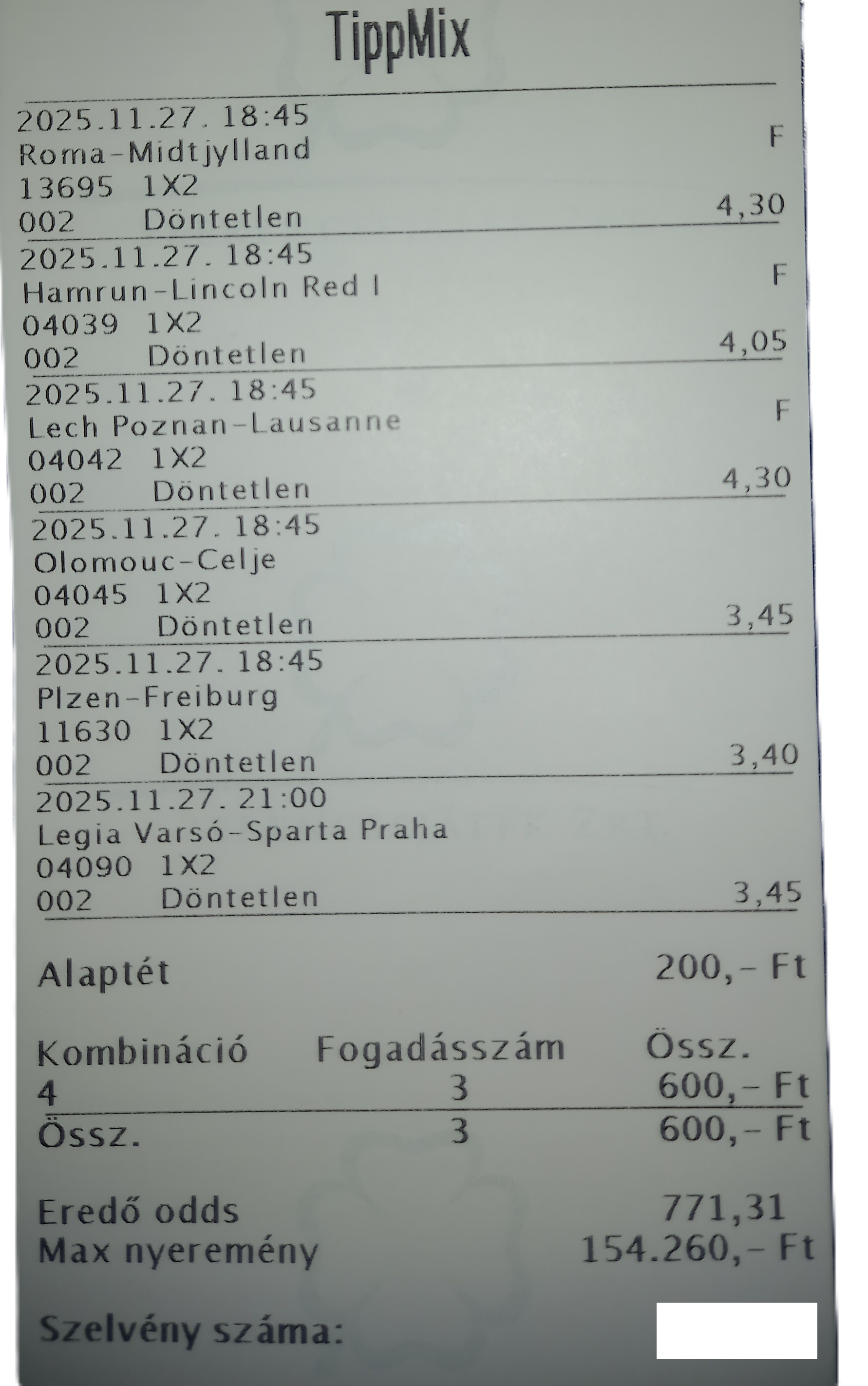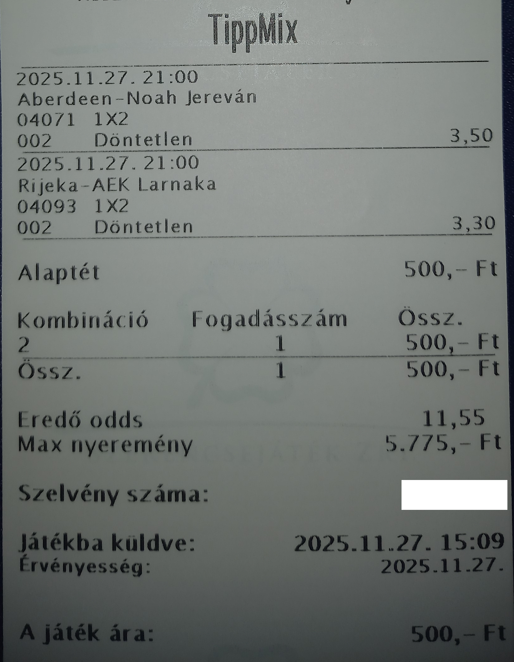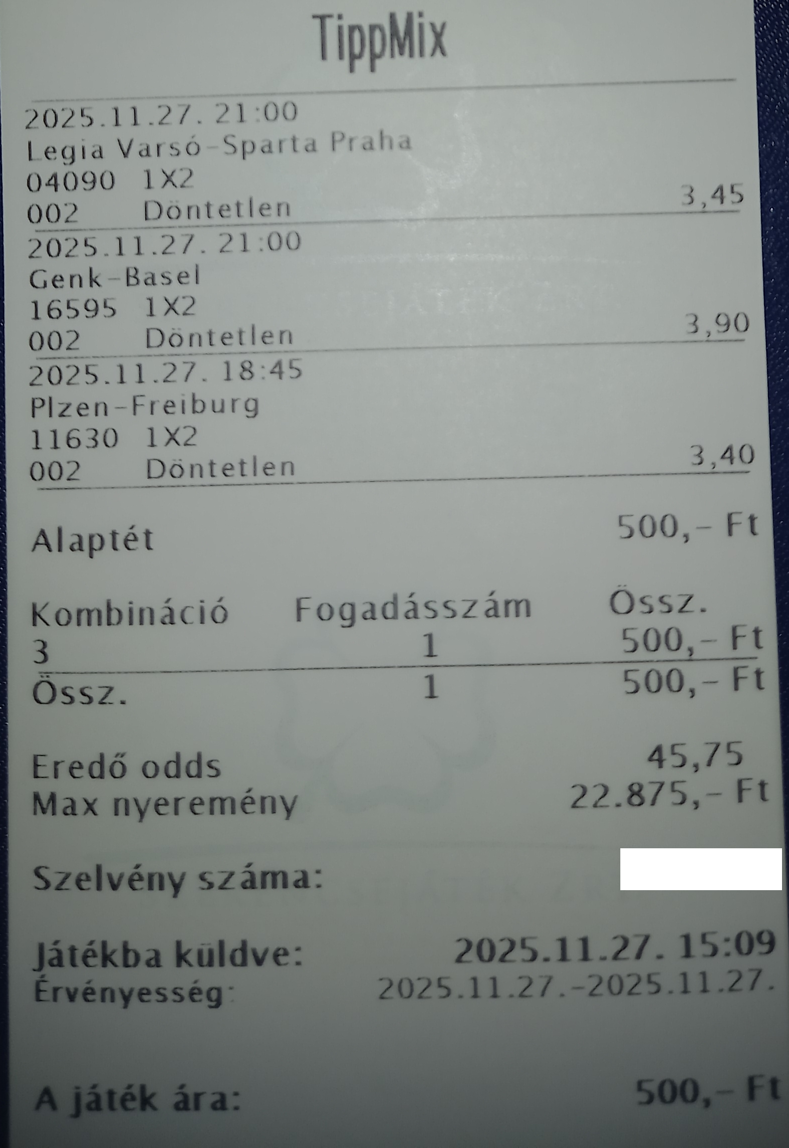 - Zs2210: Sziasztok! Kód: 50154 Sok sikert mindenkinek! 08344 D Fenerbahce - ... (2025.11.27. 12:12) 2025. november 27. csütörtök